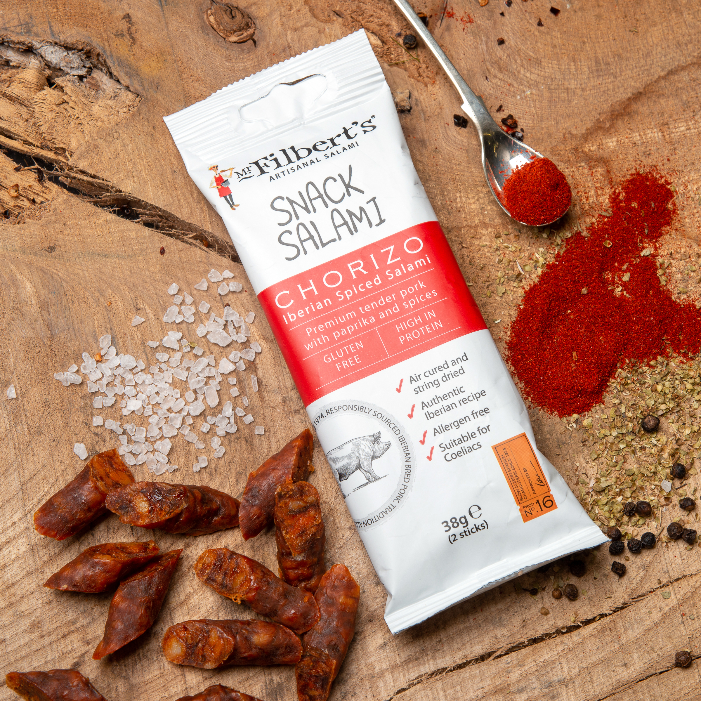 Chorizo Snack Salami is handcrafted and air dried, using a traditional Iberian recipe for a superior flavour.