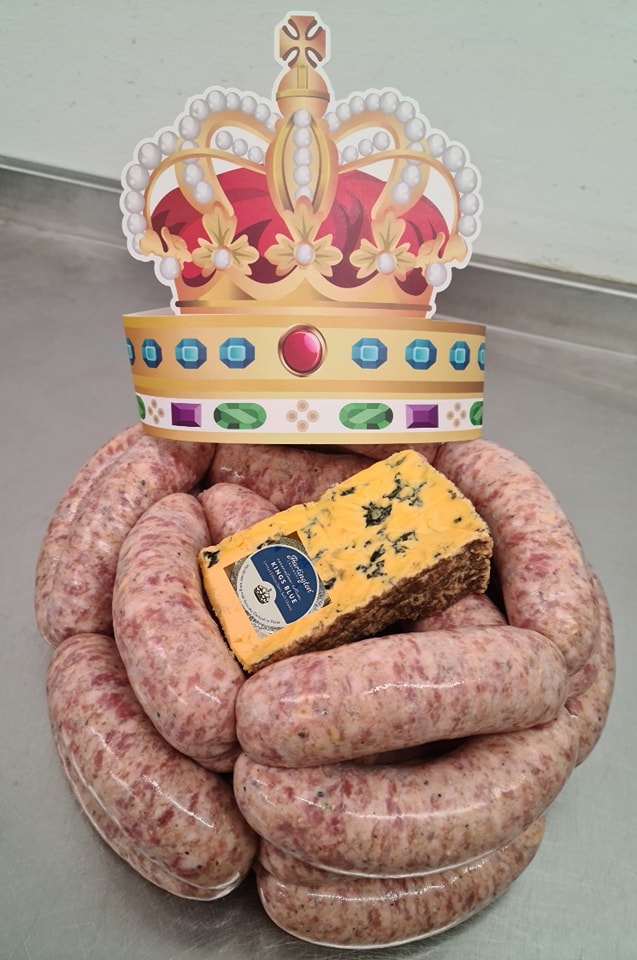 Pork Sausages with Caramelised Onion, Infused with King’s Blue Cheese!